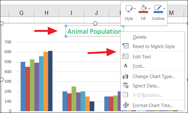 To customize the appearance of your title, right-click on the title text and select Format Chart Title to access design options.