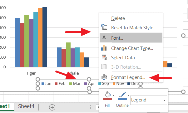 Adjusting the legend can enhance the readability of your chart. To format the legend, right-click on it and select Font to change the text style. Choosing Format Legend allows you to modify the position and effects of the legend within the chart.