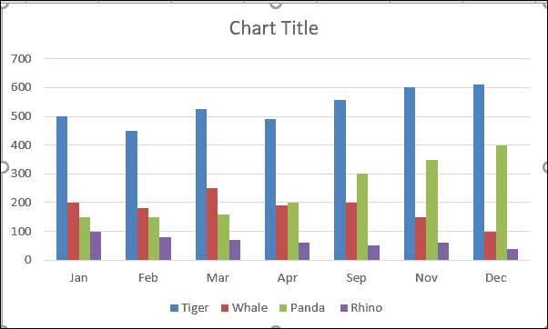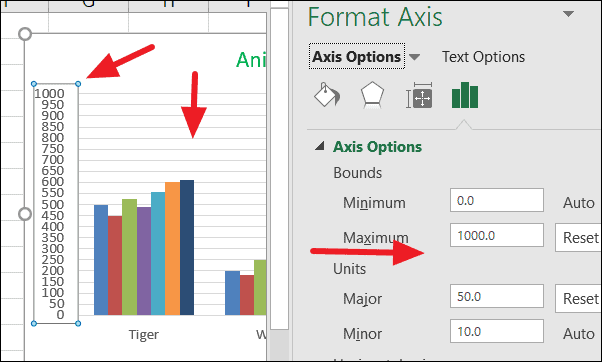In this example, the Maximum value in 'Bounds' is set to 1000, and the Major unit in 'Units' is adjusted to 50. The changes will reflect on the chart as shown below.