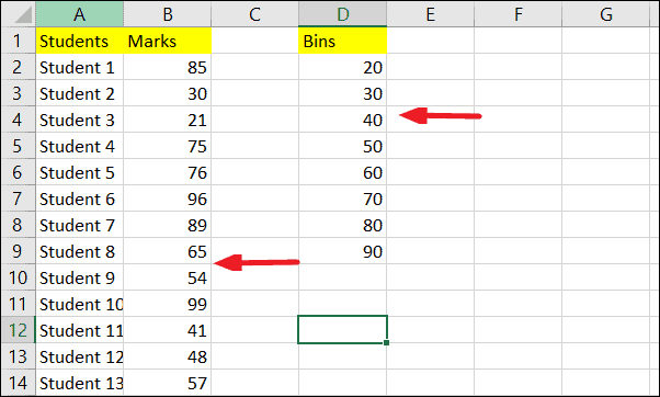 For example, you might have a list of student marks and specific intervals to group these marks: