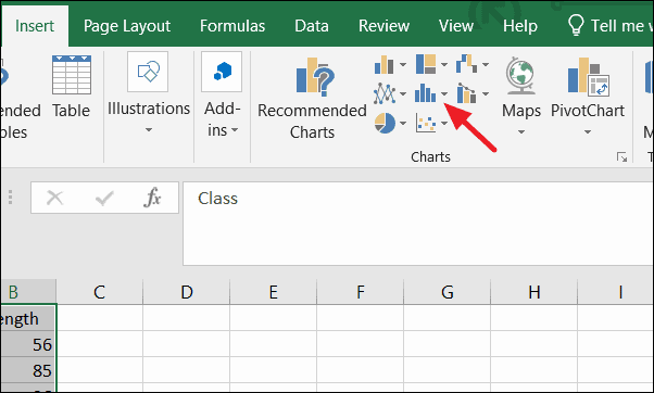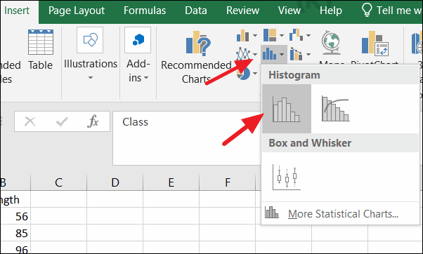 Step 3: Navigate to the Insert tab on the Excel Ribbon. In the Charts group, click on the histogram icon to access the histogram chart types.