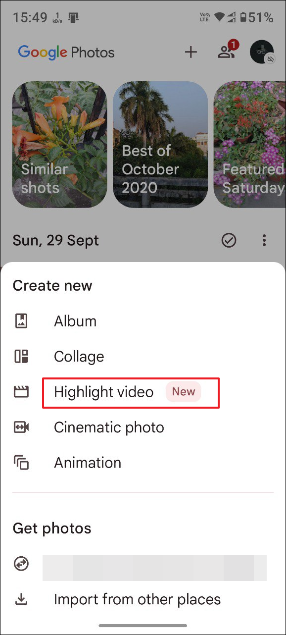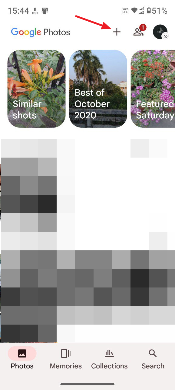 - Open the Google Photos app on your phone and tap on the '+' icon at the top.