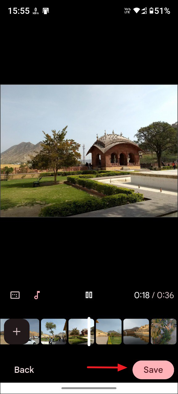 - You can also add more photos to the video if you want by tapping on the '+' button.