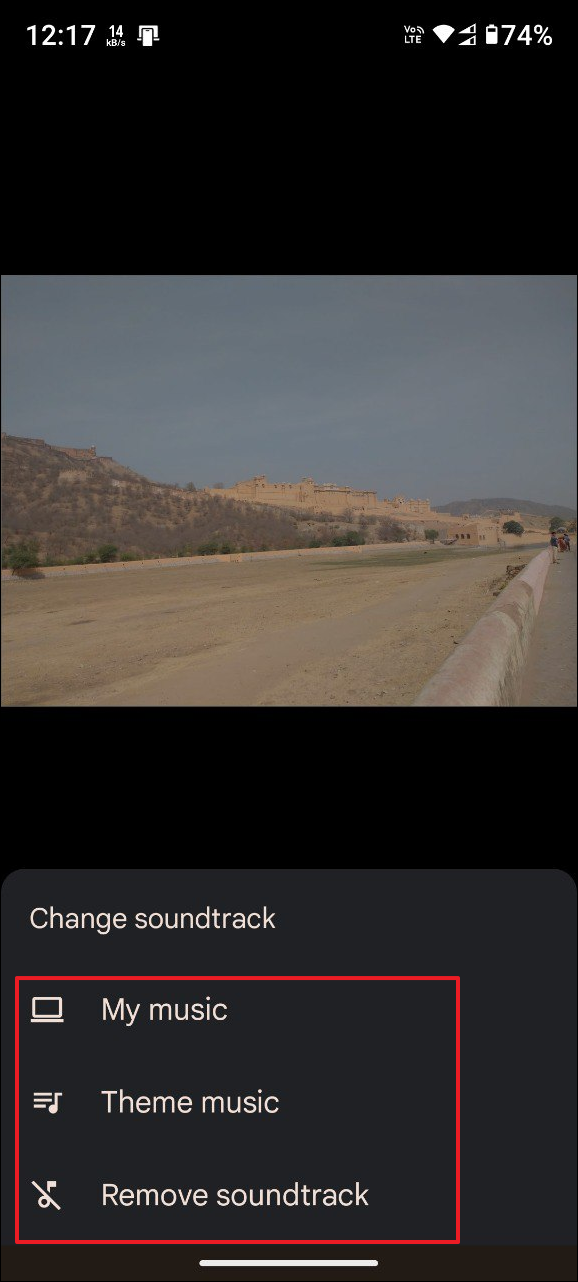 - You can either add your own music, choose a theme music, or remove any existing soundtrack from the video by tapping on the respective option.