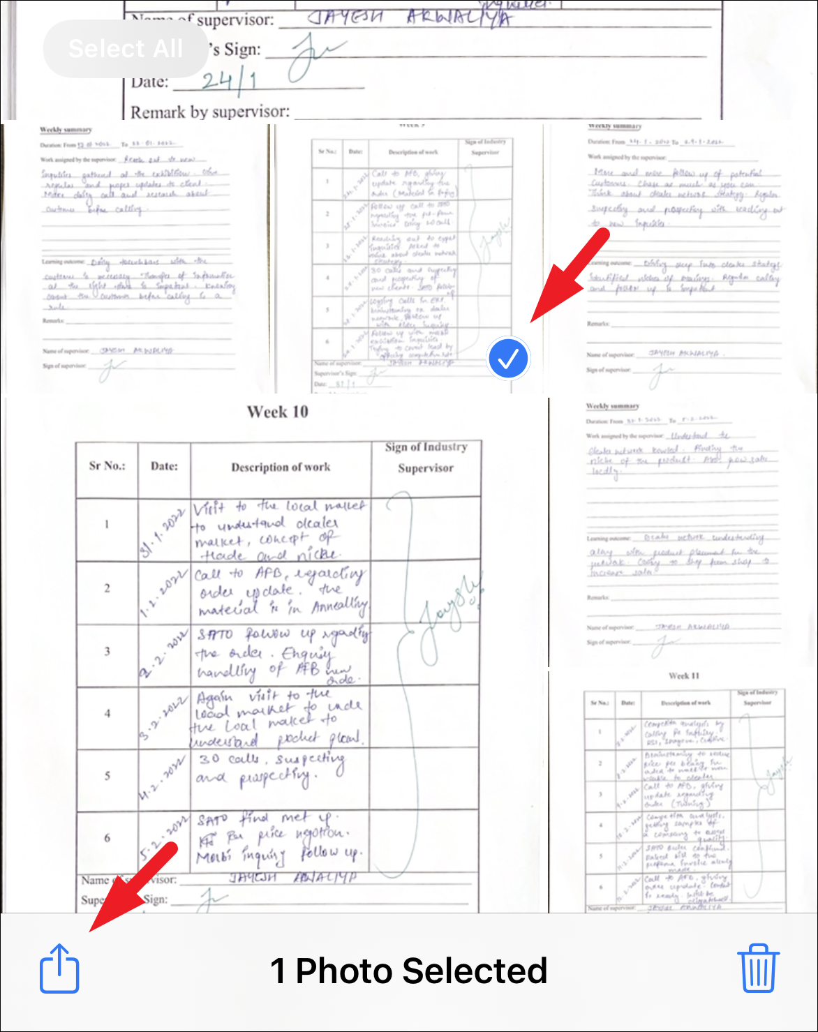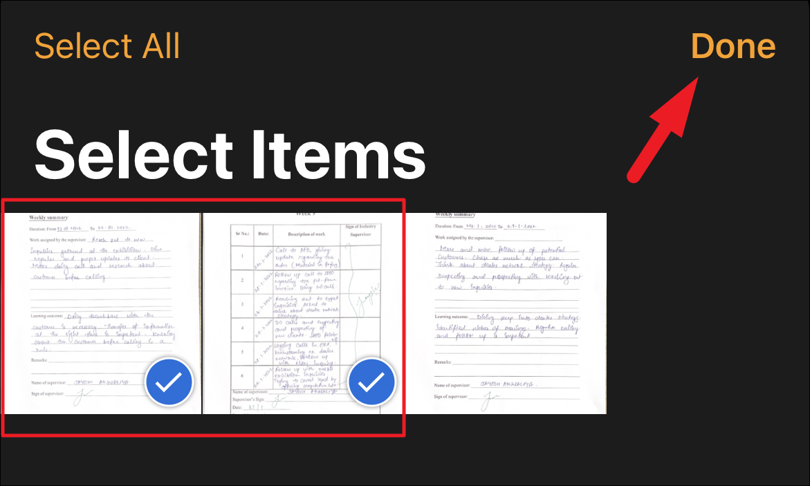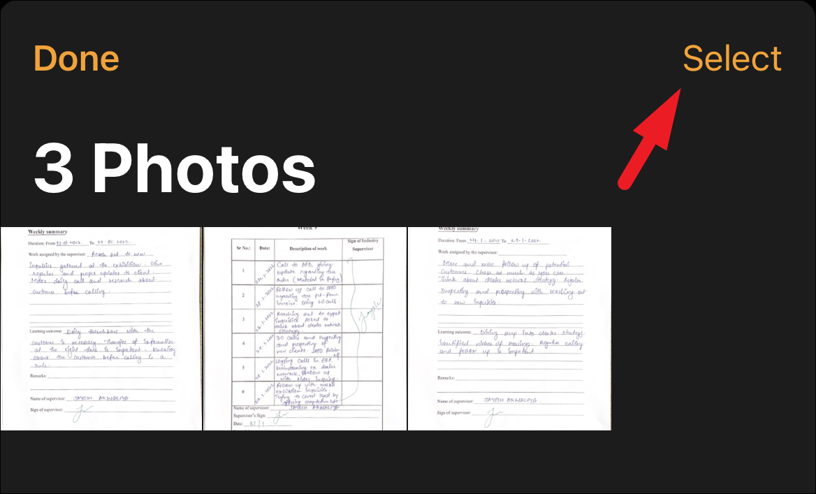 After that, tap on the individual thumbnail to select the photos and then tap on the ‘Done’ button present on the top right corner to confirm the selection.