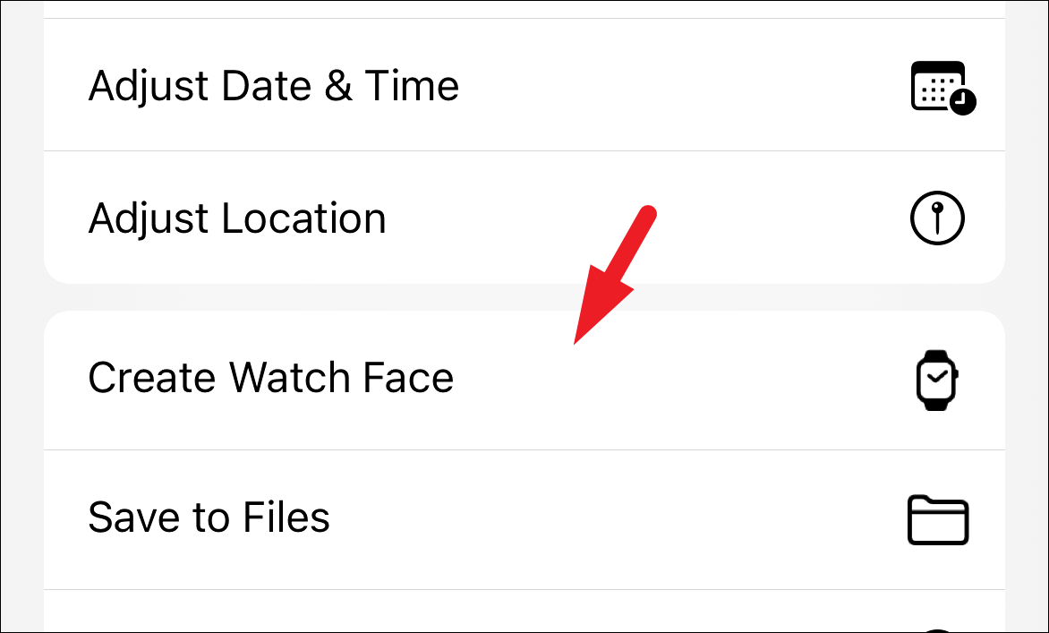 After that, from the overlay screen, scroll down till you locate the ‘Create Watch Face’ option and tap on it to proceed. This will redirect you to the ‘Watch’ app on your iOS device.