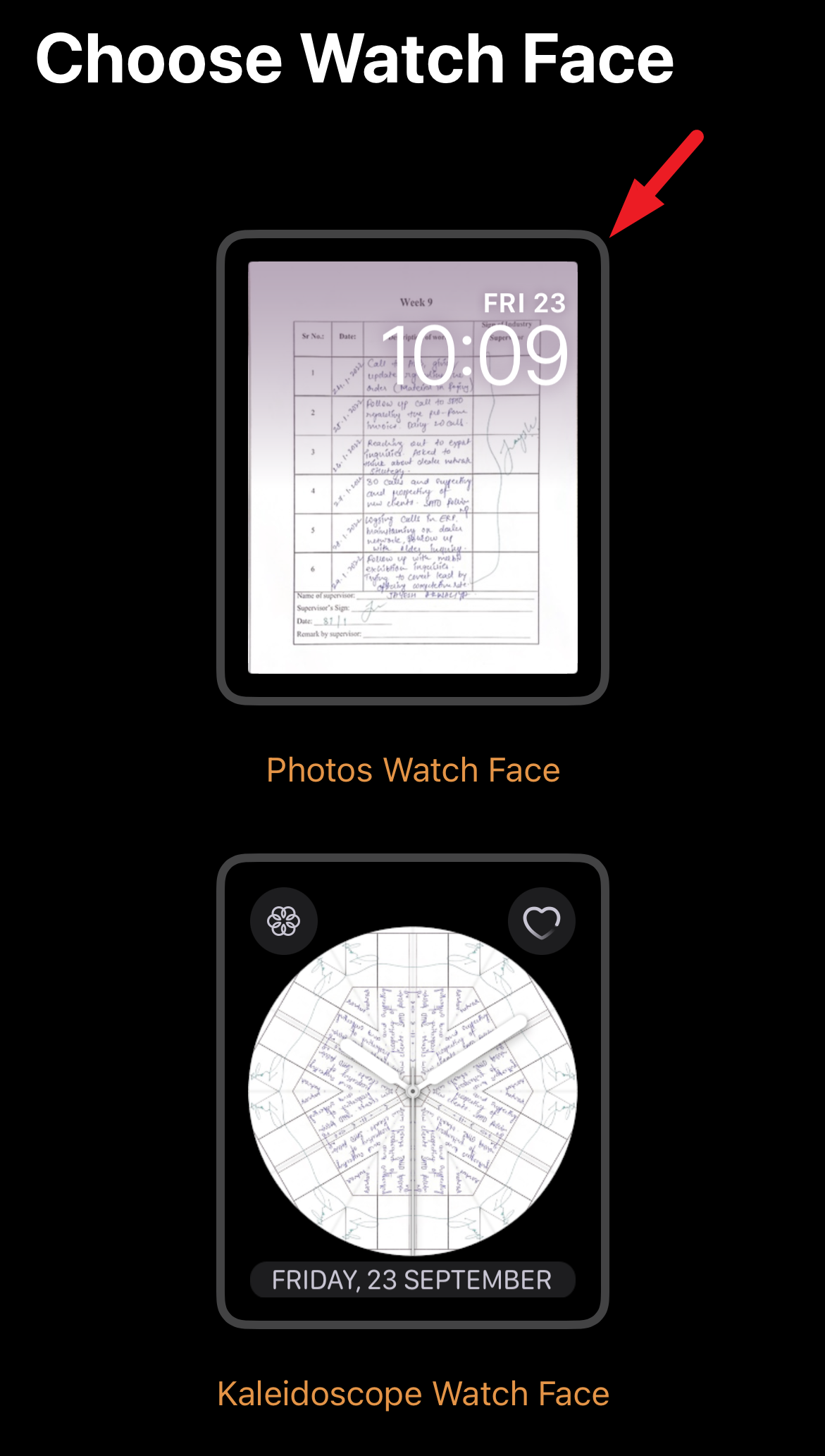 Then, on the next screen, tap on the ‘Photos Watch Face’ tile to set the picture as your Apple Watch Face. In case you wish to set the picture as a kaleidoscope face, tap on the ‘Kaleidoscope Watch Face’ tile to proceed.
