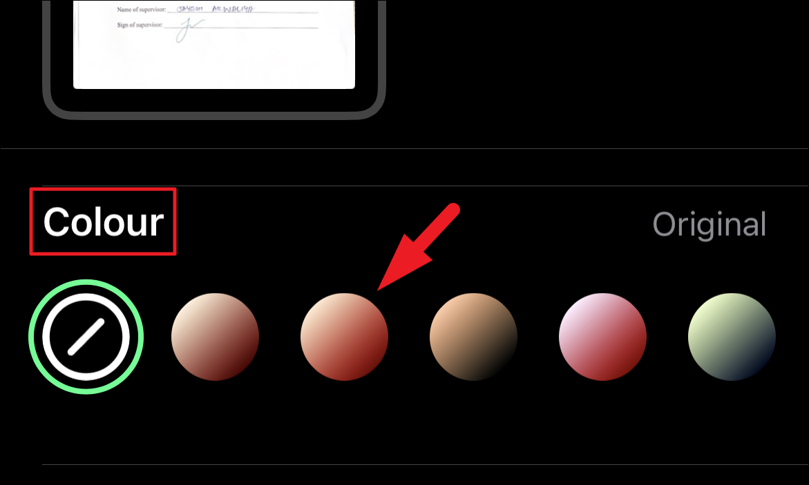 On the next screen, you can also add a tint to your picture to make it look much more appealing. To do so, locate the ‘Colour’ section and tap on the individual color option to select it. You will be able to see the preview of the color tint on the Watch Face thumbnail present on top of the page.