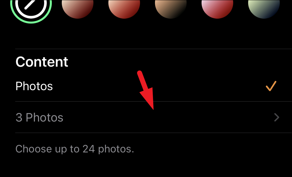 After that, if you had selected multiple photos at the time of selection but now wish to reduce the number, locate the ‘Content’ section and tap on the ‘Photos’ option to proceed.
