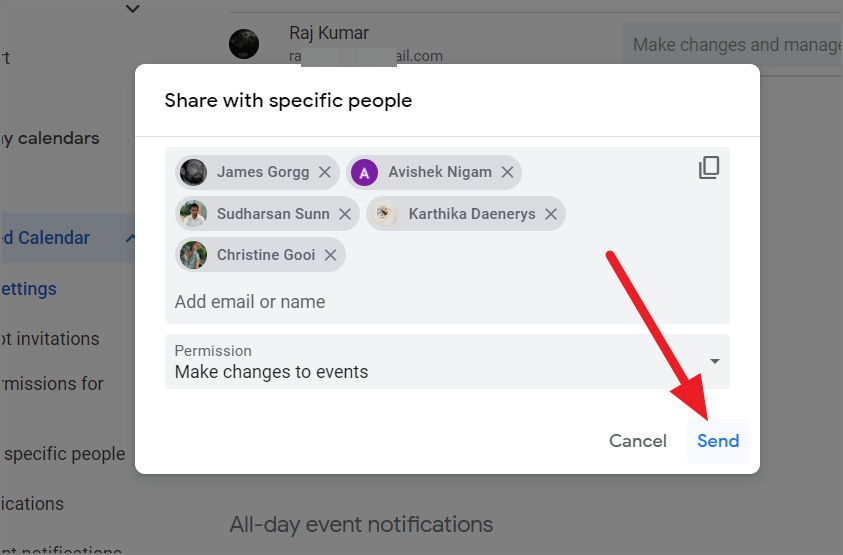 Once you click ‘Send’, Google will send the calendar invites to the email address of the selected people. However, the calendar will not be shared with those people until they accept your invitation.