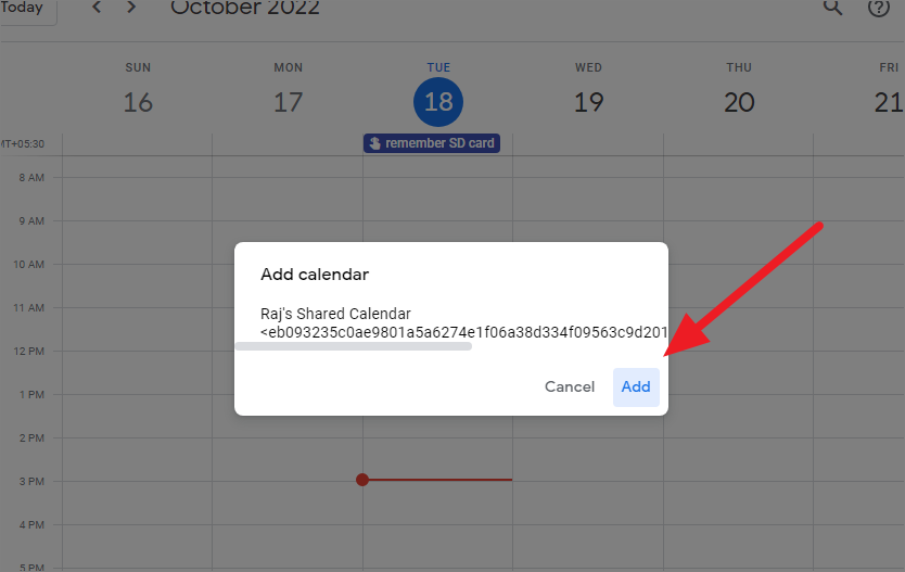 You will be redirected to your Google calendar page and prompted to add that calendar. Click the ‘Add’ button on Add calendar prompt to add it to your calendar.