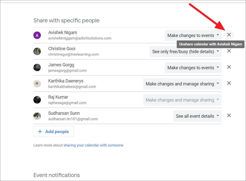 If you no longer want someone or anyone to access your shared calendar, you can stop sharing your Google calendar.