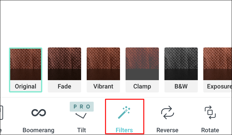 The ‘Filters’ tab helps add a filter to the video. You have a comprehensive set of filters to choose from, tap on the one that you want to apply to the ‘Stop Motion’ video.