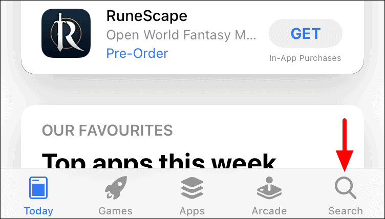 In the ‘App Store’, tap on the ‘Search’ option at the bottom right corner.