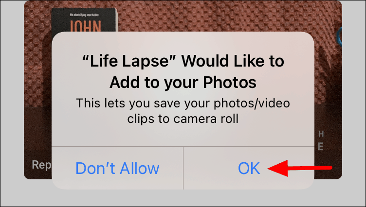 If you are saving a stop motion video for the first time, a permission box will appear on the screen. Tap on ‘OK’ to proceed.