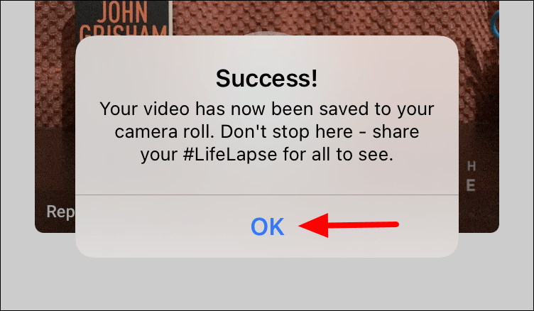 Once the video is saved to your camera roll, you will receive a prompt for the same. Tap on ‘OK’ to confirm the same.