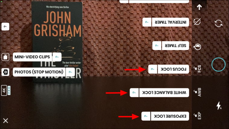 All the features will now be labeled. To know more about a particular feature, tap on the ‘?’ option next to any of the options. The three main features you should focus on are ‘Exposure Lock, ‘White Balance Lock’, and ‘Focus Lock’ to ensure consistency in the different pictures. Keep these three enabled when making a stop motion video.