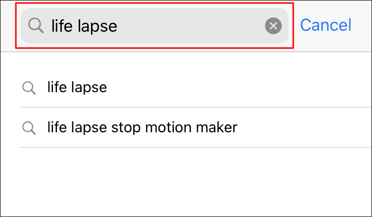 Next, enter ‘Life Lapse’ in the text box at the top and then either tap on a specific search result or the ‘Search’ key on the keyboard to view all the search results.