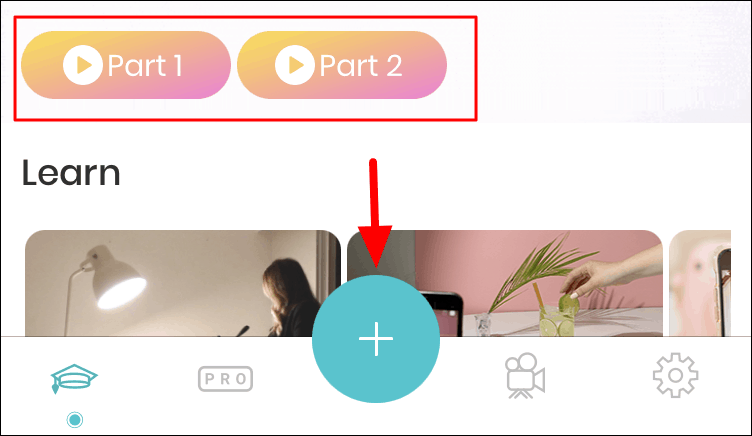 After you have launched the app, you will find two tutorial videos labelled ‘Part 1’ and ‘Part 2’. These videos will help you get a hang of the various features and the process of creating a ‘Stop Motion’ video. To create a new project, tap on the ‘+’ icon at the bottom.