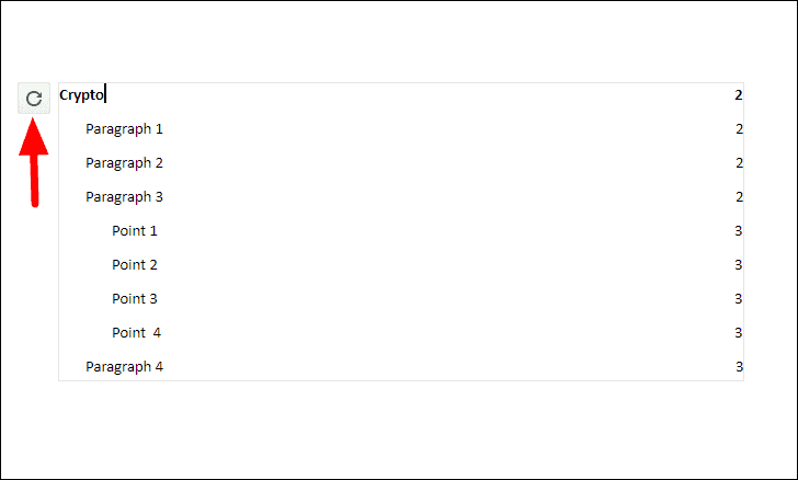 The table of contents will refresh, displaying the updated headings and page numbers.