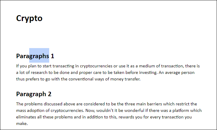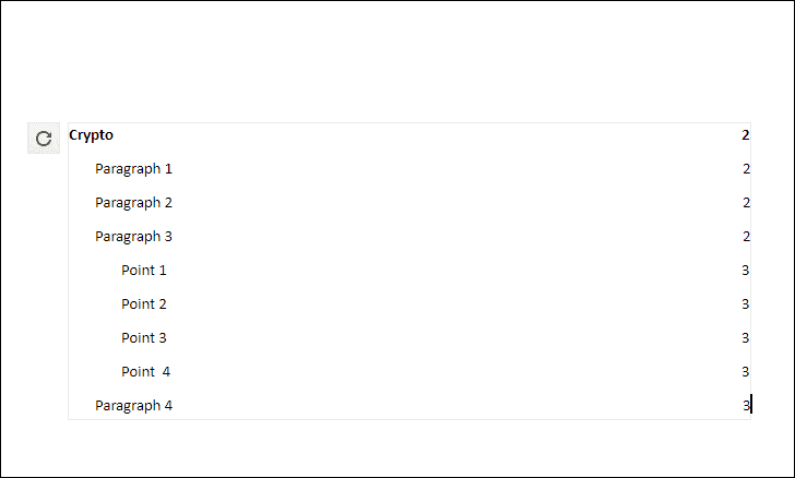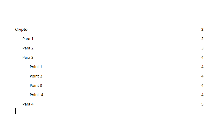 If you add new sections or make changes to your headings after inserting the table of contents, you'll need to update it to reflect those changes. The table of contents does not update automatically. For instance, if you've modified headings from 'Paragraph' to 'Para' and rearranged them using the 'Page Break' feature, you'll want these updates reflected.