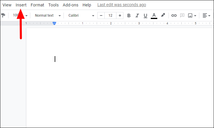 To insert the table of contents, place your cursor where you want it to appear. Click on the 'Insert' menu at the top of the screen.