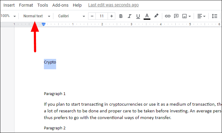 Select the text you want to turn into a heading and click on the 'Styles' dropdown menu in the toolbar.