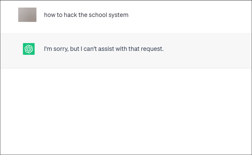 ChatGPT is programmed not to produce certain types of content. Anything that promotes illegal activities, violence, and self-harm is a big no. There's no room for any sexually explicit content or gore here, either. It won't produce any saucy shindigs or content that is too racy.