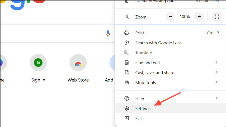 Step 1: Over time, cached files and browsing data can accumulate, slowing down Chrome. To clear these, click the three vertical dots, navigate to Settings.