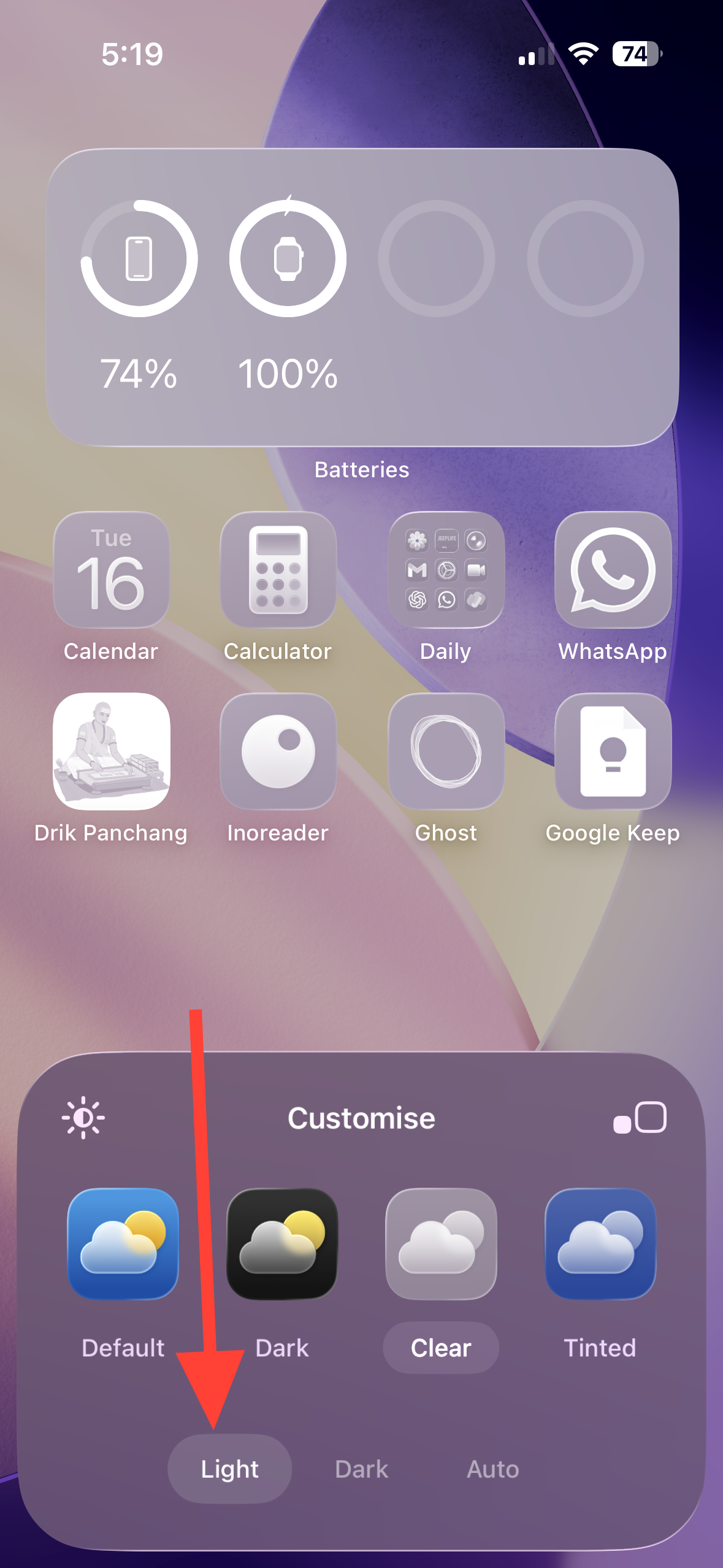 Step 4: Tap Clear. This switches icons (and widgets) to the transparent, glass-like style.