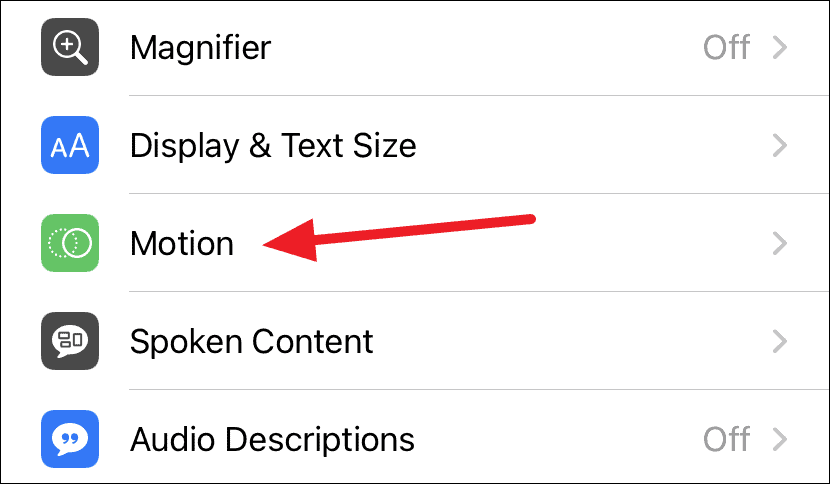 Then, select the ‘Motion’ option on the Accessibility settings screen.