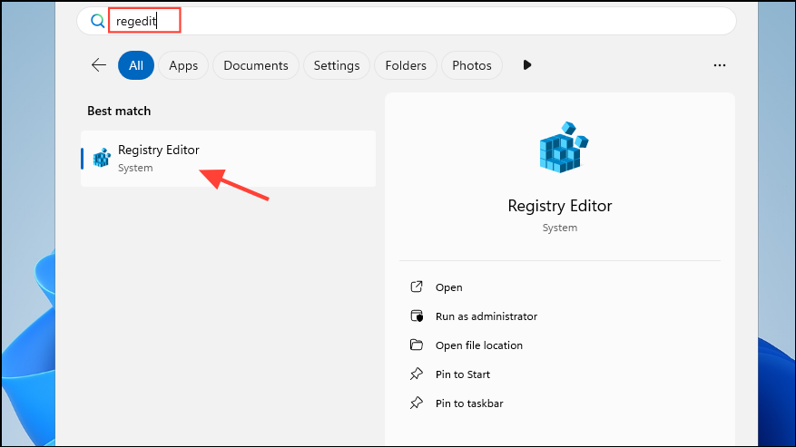 Step 1: Press Windows key + R, type regedit, and press Enter to open the Registry Editor.