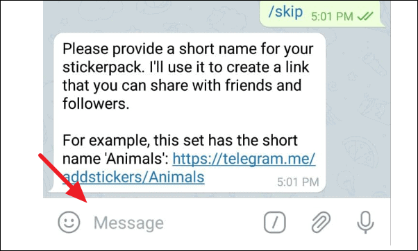 Then it will ask you to pick a short name for the pack which the bot will use to create a link for sharing.