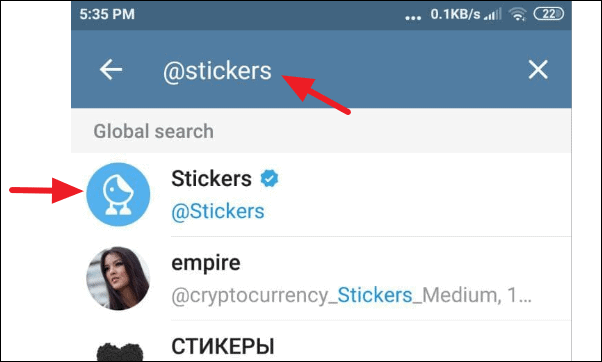 Open the Telegram app and type ‘@stickers’ on the search box and select the first channel named ‘Sticker’ from the search result. This is the Sticker Bot that helps you create, edit, and delete your stickers.