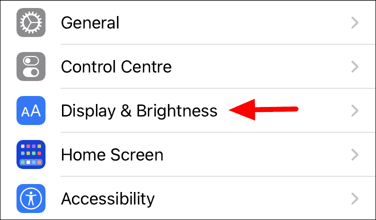 Scroll down and look for ‘Display and Brightness’ settings in the list.