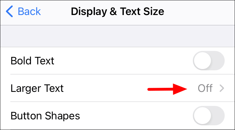 When you opened the ‘Display & Text Size’ settings earlier to bolden the text, the next option in the list was ‘Larger Text’. Tap on ‘Larger Text’ to increase the text size.