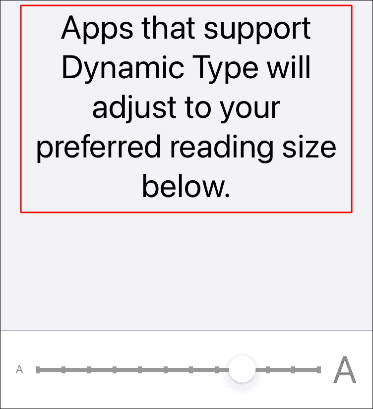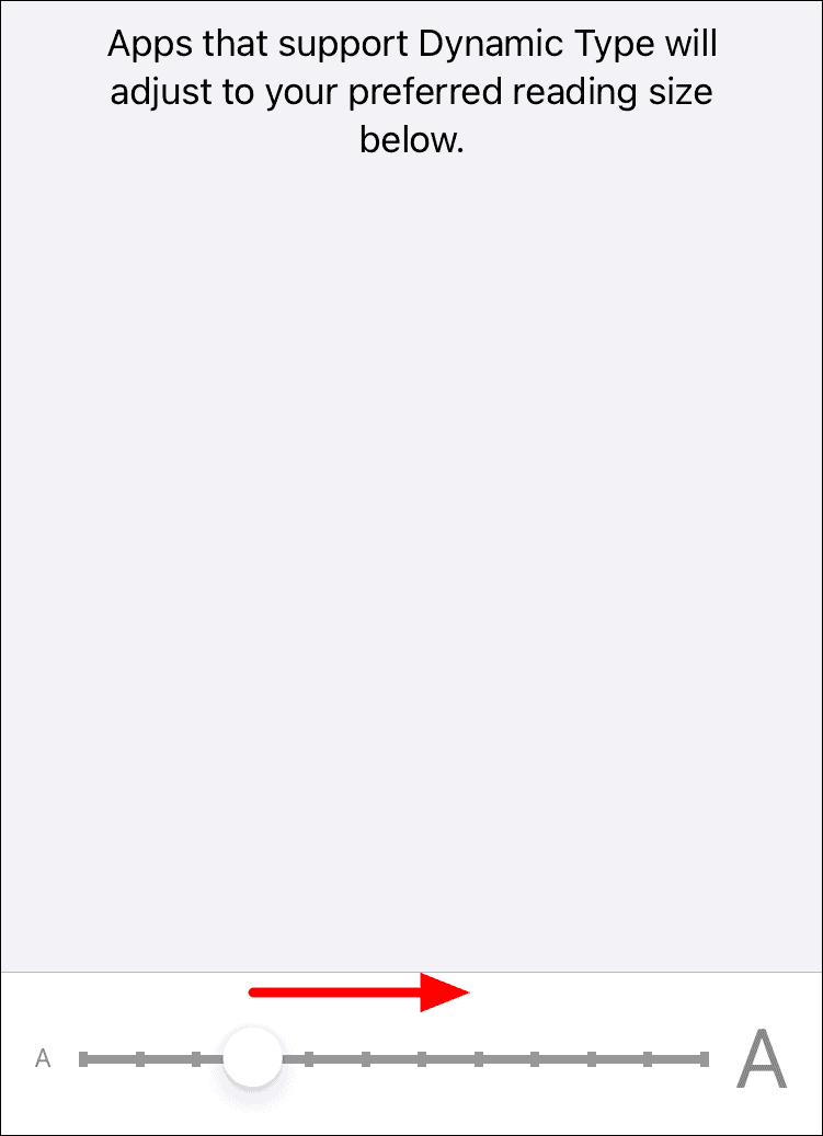 To move in either direction, tap and hold the slider, and then drag it. This setting is only applicable to apps that support ‘Dynamic Type’, which most of the apps do.