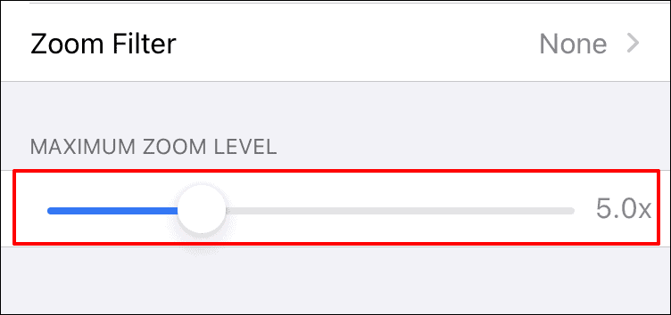 If you scroll to the bottom of the screen, you will find the ‘Maximum Zoom Level’ section. It’s set to 5 by default and can be customized by moving the slider in either direction. Moving the slider to the right will increase the maximum zoom level while moving the slider to the left will decrease it.