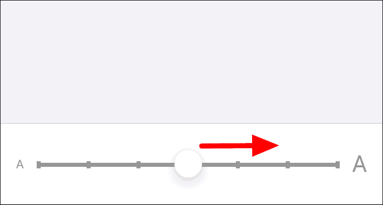 Next, drag the slider to the right to increase the text size. As you move the slider, the size of text on the screen will change accordingly, thus helping you in choosing the required level to move the slider to.