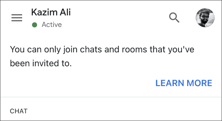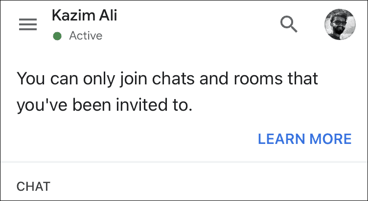 With the default text setting in place, this is how the ‘Google Chat’ app looks. This is to compare how the change in text size affects the text occupancy on the screen and also the relative increase.