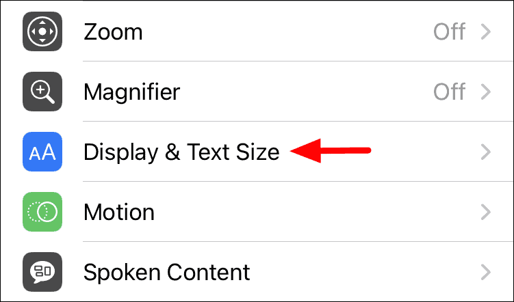 Next, tap ‘Display & Text Size’ under the ‘Vision’ section.
