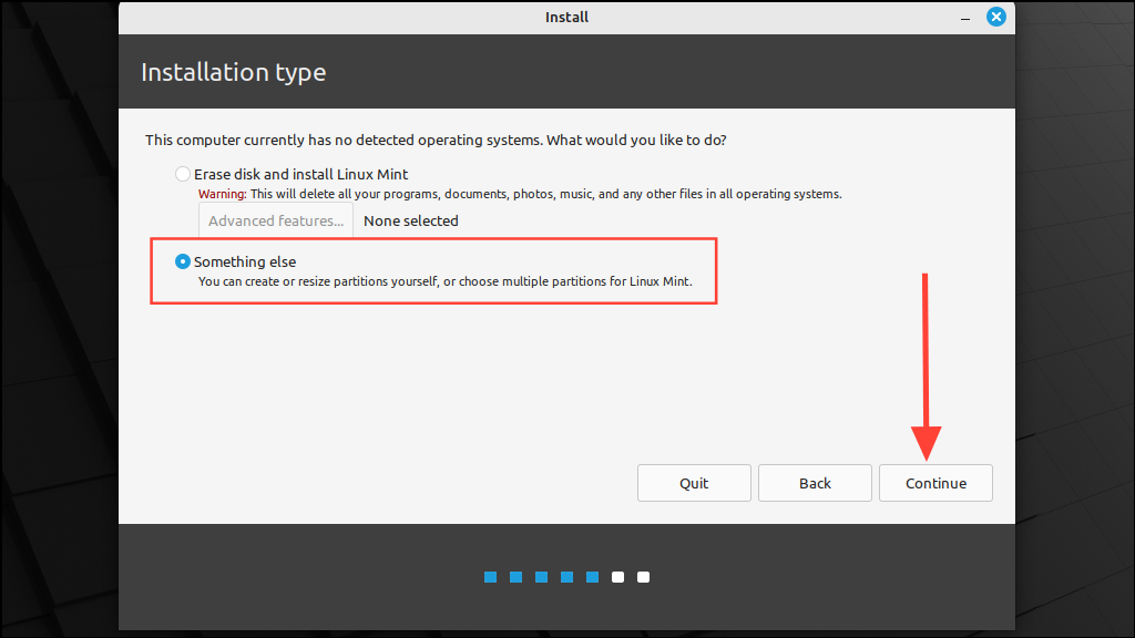 Step 1: Select the 'Something else' option and click 'Continue'.
