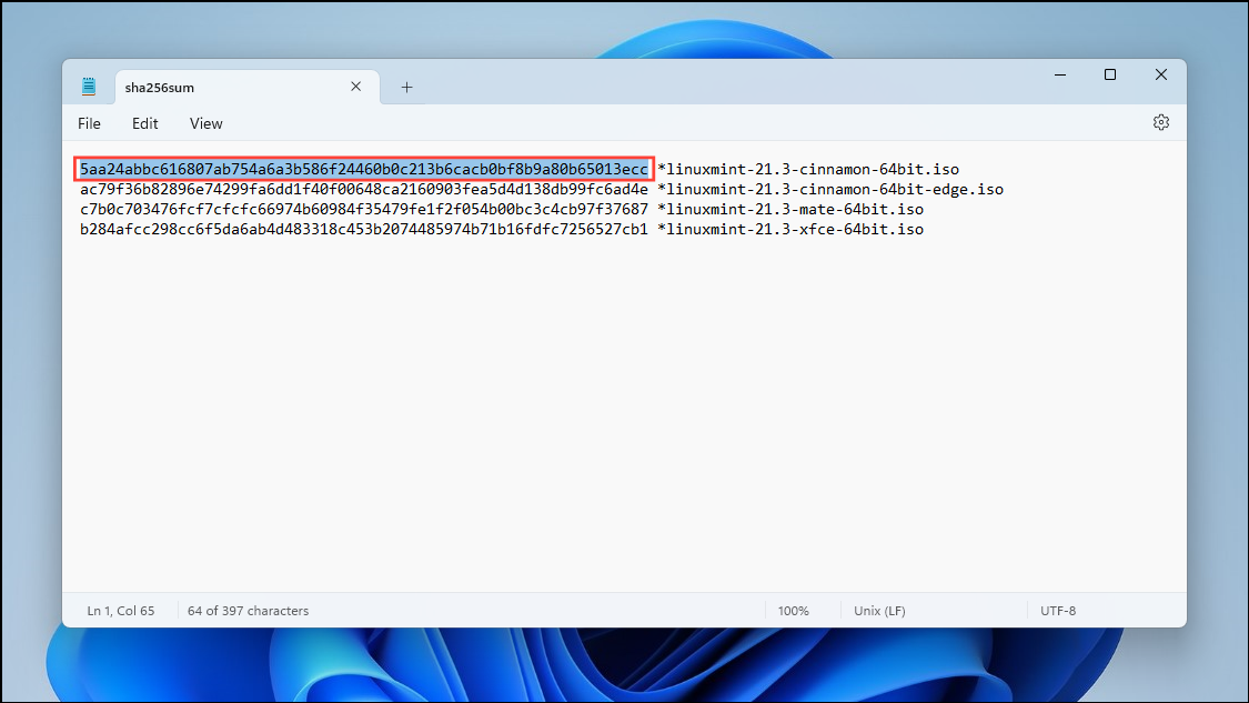 Step 6: Open the 'Sha256sum.txt' file you saved earlier. It contains the hashes for all available versions. Copy the hash corresponding to the version you downloaded.