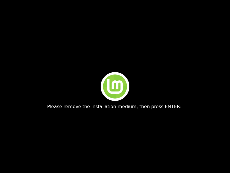 Step 10: A message will ask you to remove the installation medium. Remove the USB drive and press the 'Enter' key.