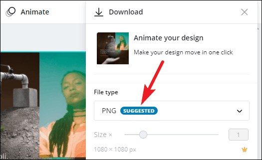 The Download pulldown menu will appear. Under ‘File Type’, select ‘PNG’. PNG is the file format you need when making images with transparent backgrounds.