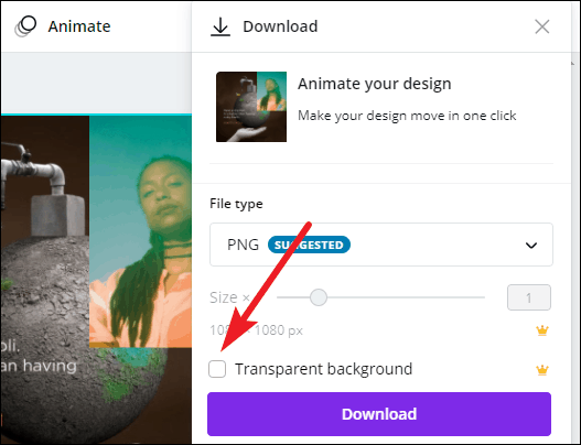 Now, select the checkbox next to ‘Transparent Background’ and click the Download button.
