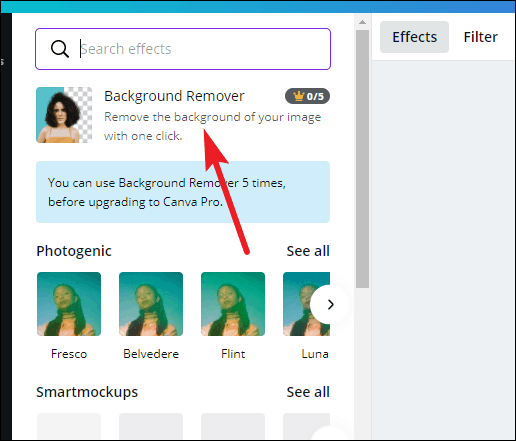 The effects panel will appear on the left. Click on ‘Background Remover’ to make the background transparent.