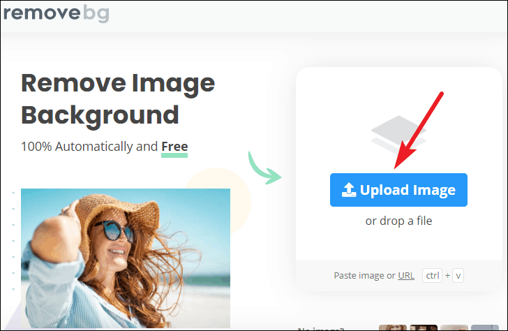 Now, go to remove.bg from your browser and click on ‘Upload Image’ button.