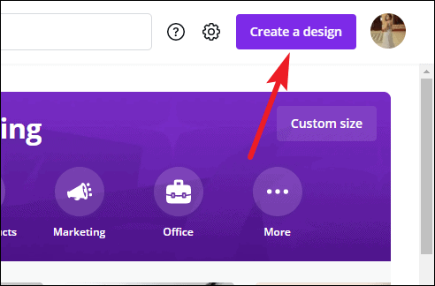 To make an image with a transparent background, start creating your design as you normally do. Go to canva.com and click on ‘Create a Design’ in the top-right corner. Then, select any size from the available templates or select a custom size. Transparent backgrounds will work with all post types.