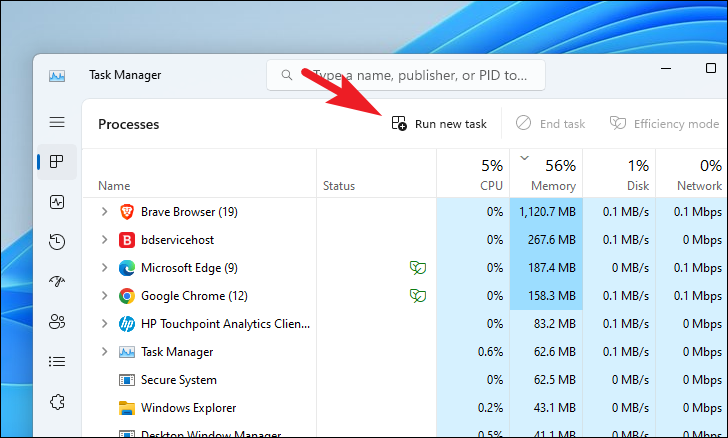 Step 2: In the Task Manager, click on Run new task at the top.